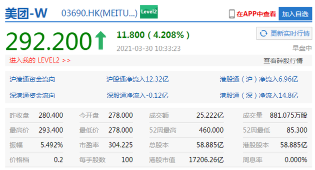 3月20日上午消息,港股开盘后,截至上午10:33,美团涨4.2%报292港元,市值报17206港元,成交额25亿港元。 据悉,美团入选了凯西伍德的方舟基金公司拟在周二推出的太空探索与创新TF。 花旗发布研究报告,将美团-W(03690)目标价由495港元调低2.6%至482港元,维持“买入”评级,列为新行业首选股。报告中称