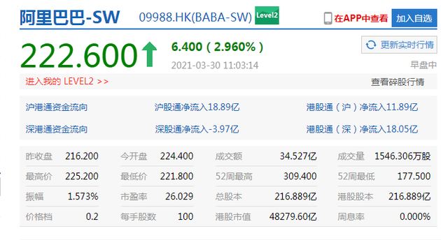 3月30日上午消息,港股科技股涨幅持续扩大,截至上午11:03,阿里巴巴涨3%,百度涨1.67%,泡泡玛特涨近4%,京东健康涨6.8%报114港元,哔哩哔哩跌0.25%报798港元。 消息面上,京东健康昨日发布了上市后首份财报,财报显示,京东健康2020年总收入为193.8亿元,同比增长78.8%;非国际财务报告准则下盈利7.5亿元。截