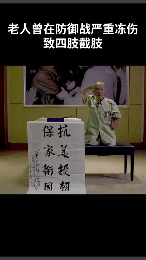87岁的周全弟 是一名抗美援朝老兵 在防御战中 他曾在雪地潜伏三天三夜 被严重冻伤 四肢被截除 成为一级伤残军人 志愿军战士们从冰雪中发起冲锋 “我们在雪地上趴了三天三夜, 最后一天晚上, 要下命令开始打敌人的时候,