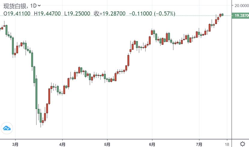 周四(7月16日)亚洲交易时段,风险情绪谨慎,亚股全线下挫,中美关系不断紧张令风险人气遭到打击。 现货白银在昨日刷新年内高位后进行盘整,目前交投在19.35美元附近,近期银价涨势较为凌厉。 疫情方面,据实时信息数据更新网站Worldotr的统计数据显示,截至北京时间7月16日09:48,全球新冠肺炎累计确诊