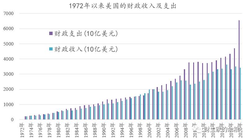美联储疯狂印钞,一年印3.5万亿美元;但相比美国联邦政府,它还不够疯狂,因为美国政府一年借债超过6万亿美元!