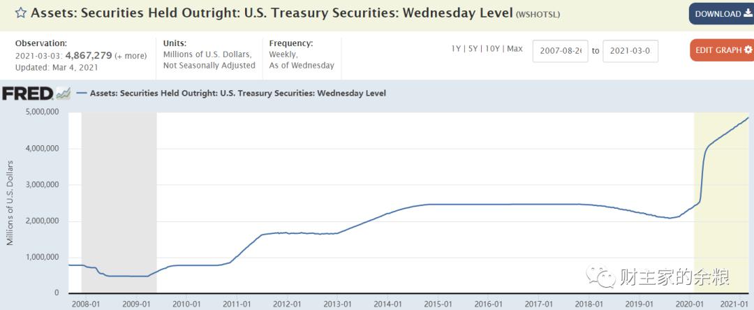 但是,如果是美联储来买,意义就完全不一样了,因为美联储购买,就是凭空印钞票(就是在键盘上敲数字而已),意味着市场上的美元基础货币数量在大量增加。