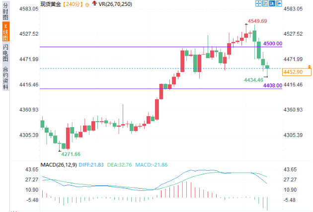 地缘因素则在短线主导了回撤的触发点。近期围绕俄乌局势的谈判前景出现更乐观的声音,市场对达成和平协议的预期抬升,避险资产的需求边际回落,叠加美元小幅反弹,使现货黄金自阶段高位回撤逾100美元,盘中一度下探至4435美元附近。需要强调的是,预期本身仍存在不确定性,缺乏清晰时间表时,风险溢价往往呈现“上得快、下得也快”的特征,这也解释了现货黄金在消息面驱动下的快涨快跌。