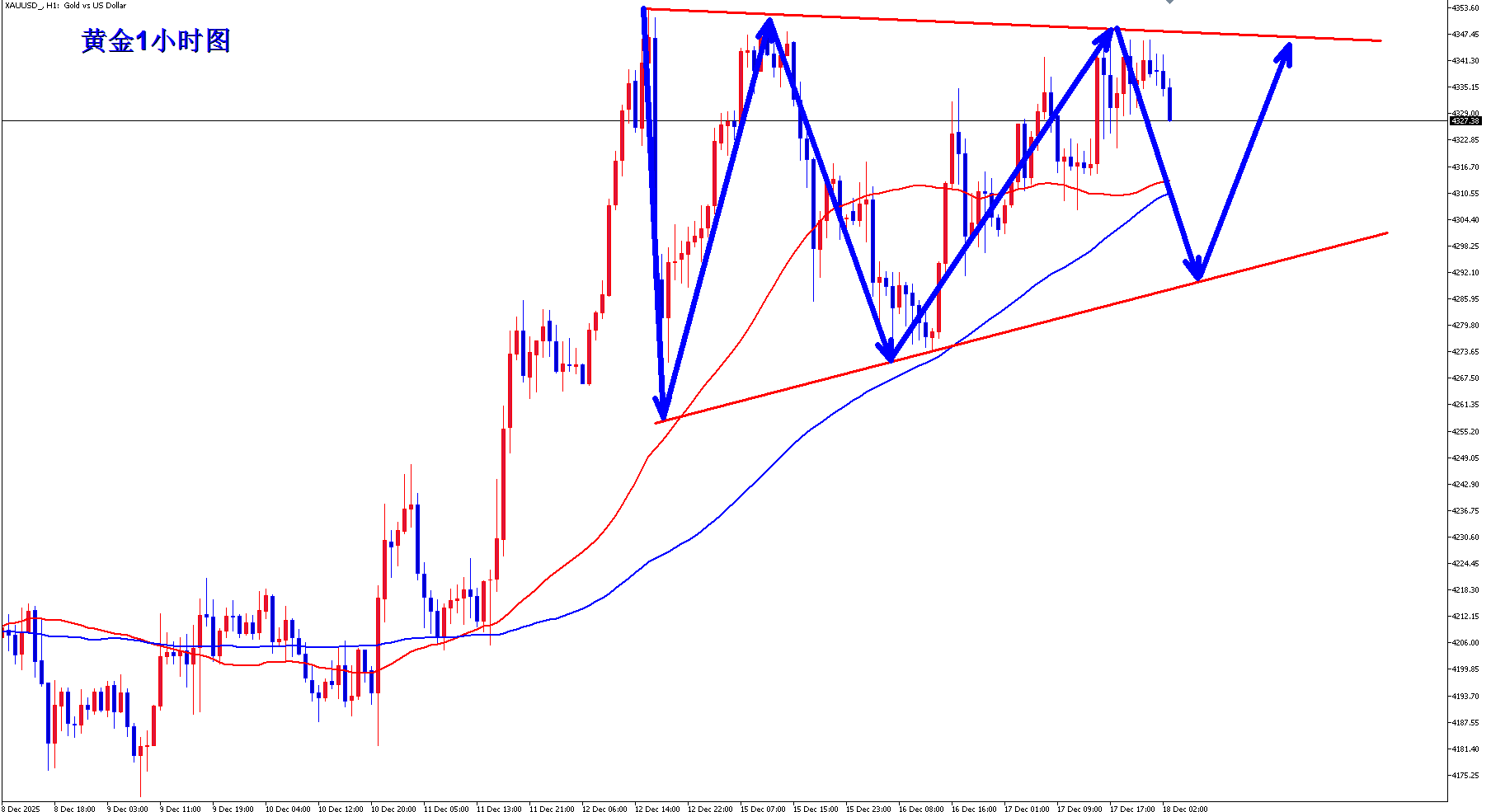 黄金1小时还是在大区间震荡,不过黄金整体现在还是在高位,如果做多仍然需要等待回落机会,下方关注4280区域的支撑在逢低继续多,上方如果不能有效突破4350,那么随时可能还是会承压回落,黄金已经三次冲个承压4350一线压制难以突破,没有突破之前,还是在大区间震荡,如果黄金要爆发新一轮的行情,那么突破站稳4350之后才能打开新的上涨空间,再顺势跟进。