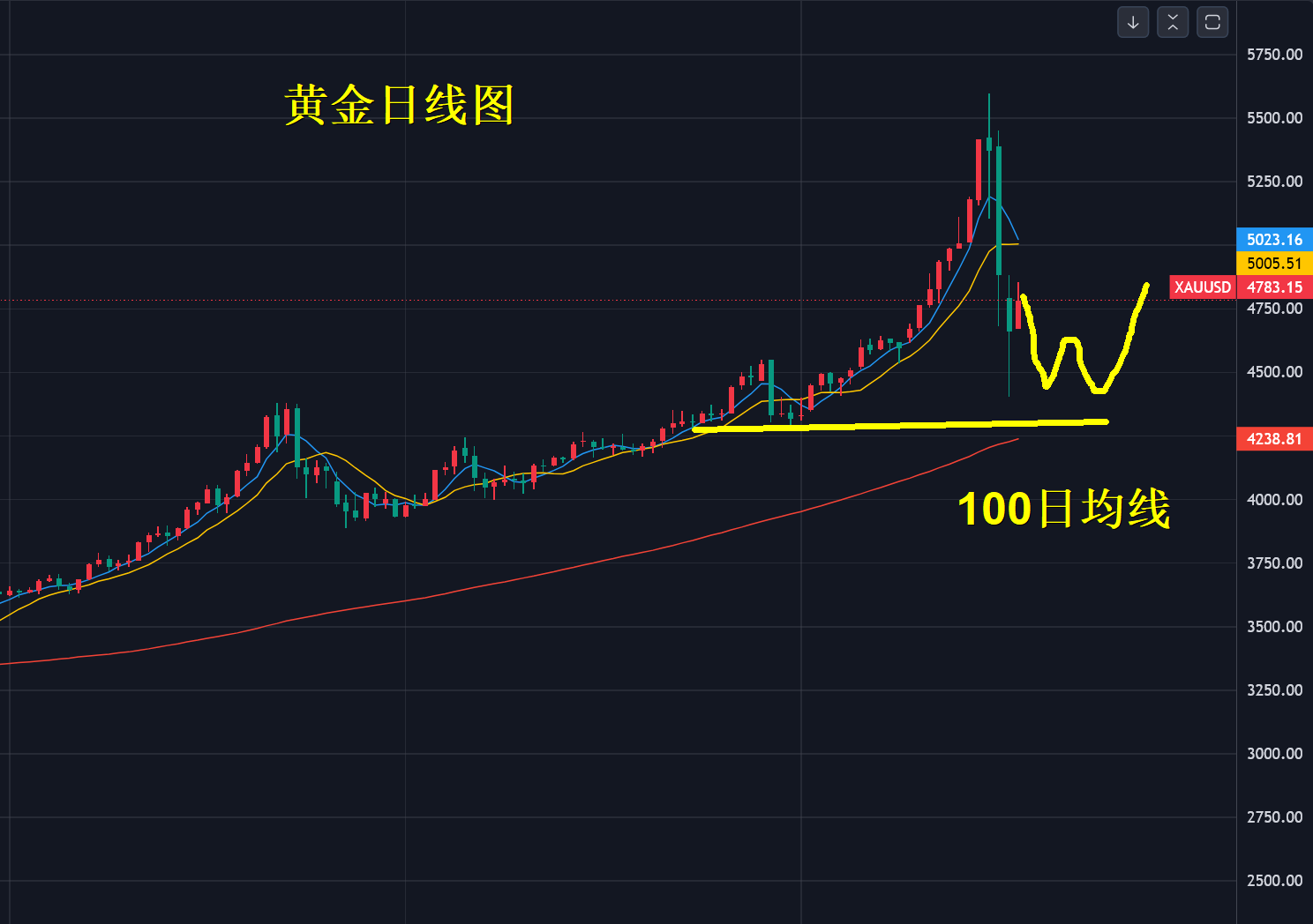 黄金下跌有没有结束?到底能跌到多少,不是看支撑位在哪,现在回头看4400美元是低点,后悔卖飞了,就像5600美元是高点一样,行情走出来才知道高低点,下跌结束重点是最后一次下跌前高点破位。2.3.png