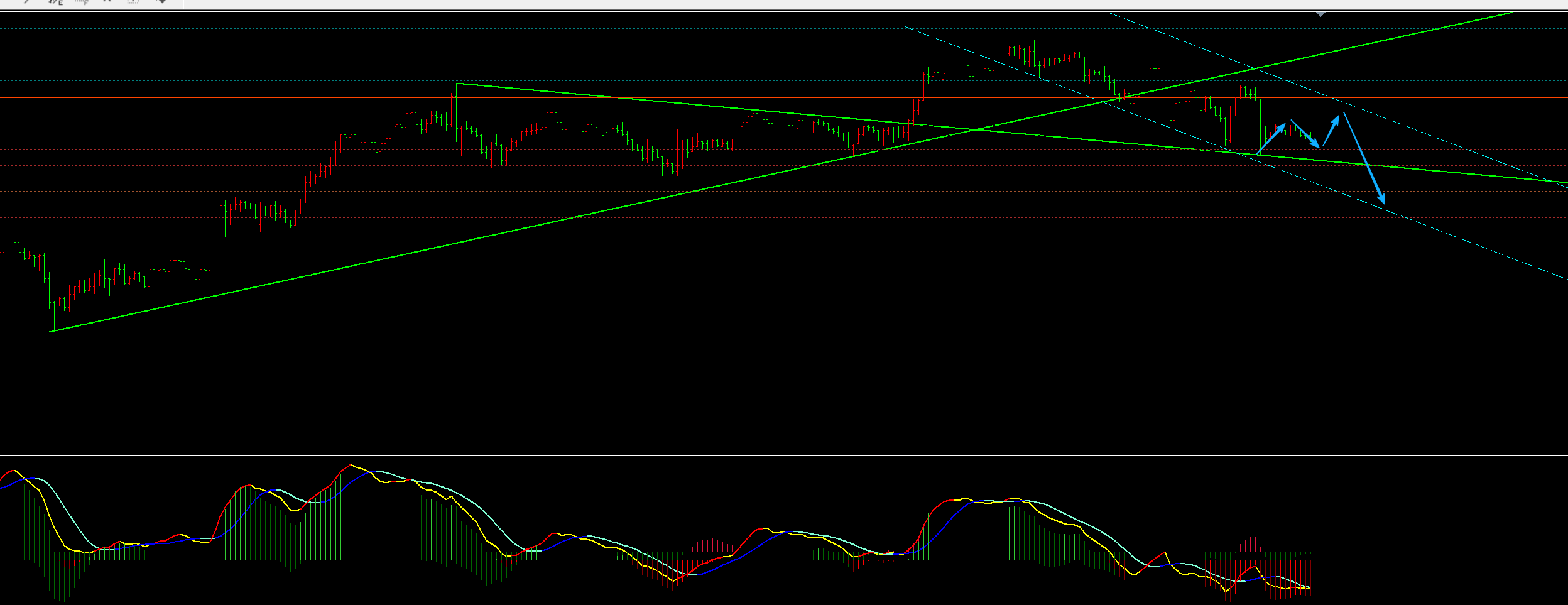 昨天黄金继续走宽幅震荡,亚盘跌欧盘反弹美盘跌,从整个运行来看,欧盘再次触及早盘高点小破再跌,最终以带有上下影线的阴收报线,从趋势的角度来看空头没变,从运行的方式来看还是一个宽幅震荡,现在日图弱空,但是价格还在上线支撑,昨天早评也说了只有进一步收复上线才能进一步打开下跌格局,其次价格目前也运行到四小时下线,周四凌晨的冲高回落大阴线,昨天的探底回升阳阴大转换,价格仍然没能进一步延续下跌,从这里也可见整个下跌不会哪么哪么通顺,我预期仍会一波三折,另外就是小时图基本还是运行于上下线,配合上图预期还是会贴着边线下行,目前早盘重点关注3636-31这里,上边3648的多空平衡,突破上方将运行延伸58-65一线的边线压制,而下破进一步则3620-3600及3885一线的支撑,所以综合来看今天看空不追空,先看反弹后再空。
