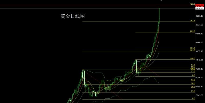 黄金市场昨日延续拉升趋势5179.5的位置后行情先回落,日线最低给到了5155.2的位置后行情强势拉升,给出5312附近后整理,回踩5332.5的位置后凌晨受到基本面影响强势拉升日线再创新高给出5419.5的位置后整理,日线最终收线在了5414.9的位置后日线以一根下影线很长的大阳线收线,而这样的形态收尾后,日线形态已经超出技术范畴,形态严重超买,虽然是基本面避险引起的,但再去做多需要谨慎,点位上,下方3325和3322的多和3368-3370的多和3377和3385多和3563的多减仓后止损跟进在4800持有,4176和4174的多和4187和4184的多以及4208和4205多和4455的多减仓后止损跟进在4900持有,今日早盘直接拉升一会5443多止损5436,目标看5485和5500和5524和5558-5562技术压力做获利了结空