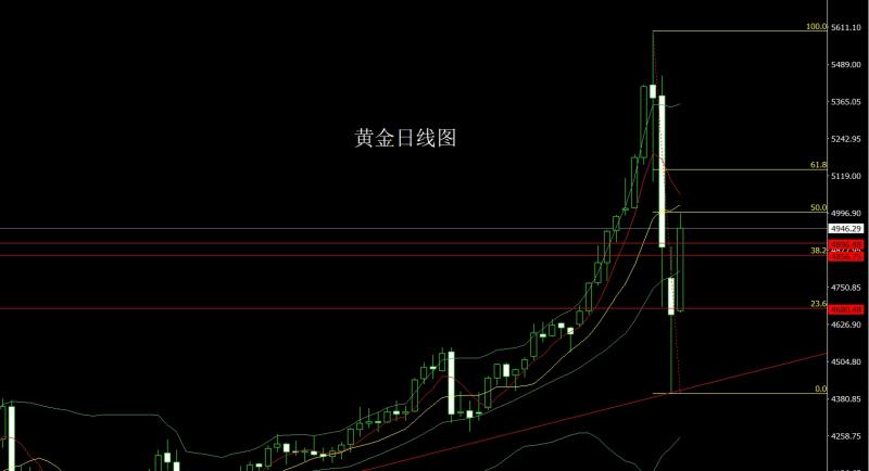 昨日黄金市场早盘低开在4779.2的位置后行情回补缺口给出4886的日线高点后行情强势回落,日线最低给到了4398.7的位置后行情受到本轮极限上行趋势线支撑强势拉升,给出4814.2的位置后整理,日线以一根4659.9的位置后日线以一根下影线极长的类锤头形态收线,而这样的形态收尾后,昨日4400的多减仓后止损依旧放到4430,今日的行情4485多止损4479,跌破的话下方4445多止损4439,目标看4560和4650和4700和4780和4850.