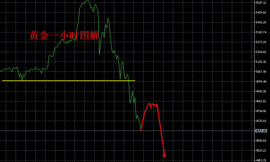 短期黄金还有进一步调整的空间,按照上周五5600高点到5000关口的见顶结构比例计算,下方低点保守看在4400美元附近,对应内盘价格大概在1000或980区域!当然这不是绝对值,核心还是要盯紧一小时级别的形态结构变化。