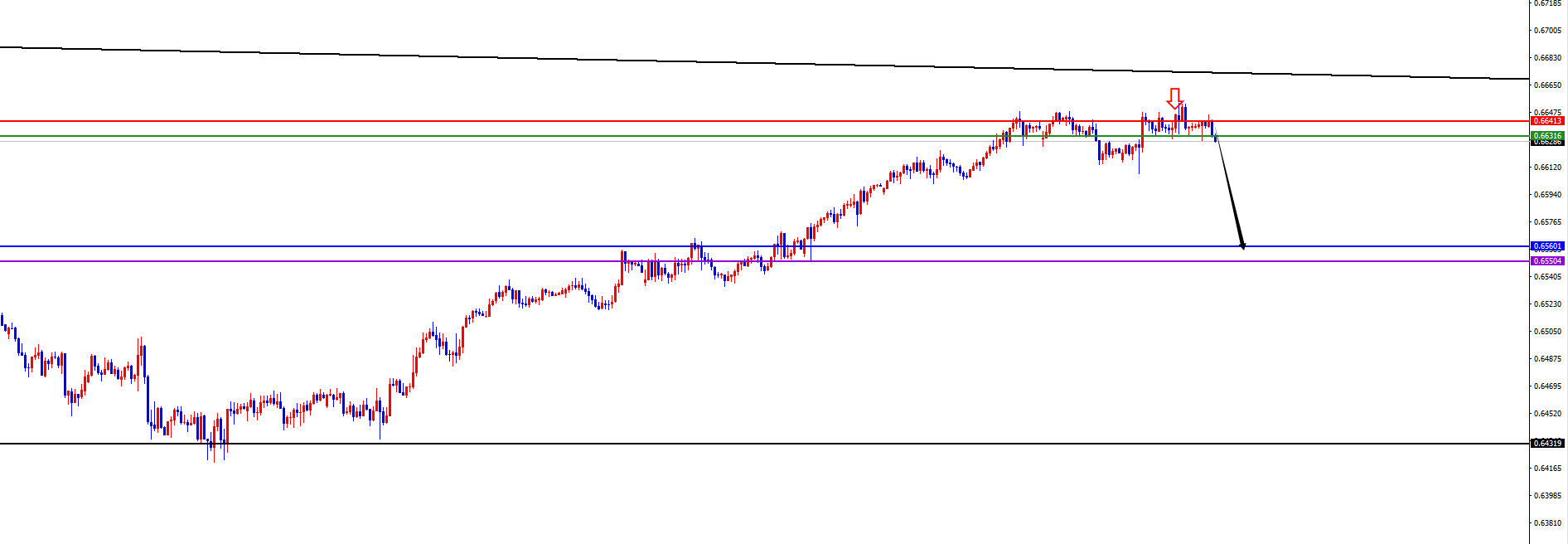 关键分水岭0.6630-40区域,价格没有出现反转之前先维持空