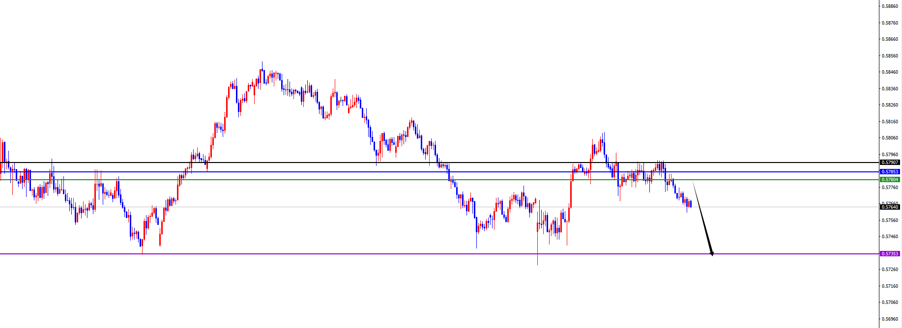 关键分水岭0.5770-80区域,价格反转信号之前维持空(关注周线线支撑得失)