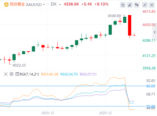现货黄金周一大跌4.5%,报每盎司4330.79美元;美国2月期金下跌4.6%,报4343.60美元。铂金与白银跌幅更为显著,现货铂金重挫14.5%至2096.53美元,现货白银急跌9.5%至71.66美元,现货钯金也暴跌15.9%至1617.47美元。所有贵金属均在近期攀升至历史或多年高位后出现回调。