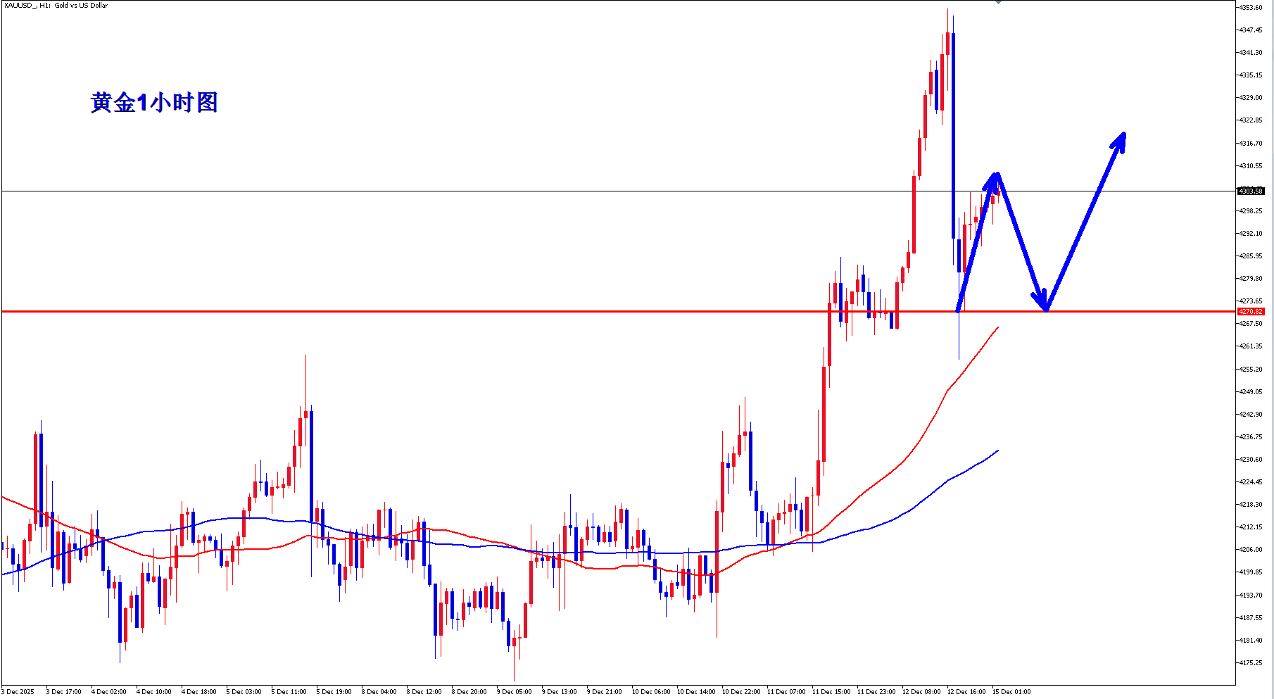 黄金周五距离历史新高仅一步之遥,不过好景不长,黄金多头最终没有坚守住,黄金后半夜空头直接发力,黄金大跳水,快速下跌近100美金,不过黄金多头探底之后,下方承接力也还是很强,再次进行强势反抽,多头还是在不断角逐,那么黄金多头能否再次崛起,今天就很关键! 黄金1小时均线继续金叉向上的多头排列发散