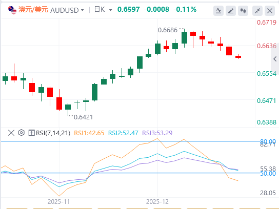 澳元/美元汇对周四价格跌破0.6600。日线图的技术分析显示,货币对位于上升通道趋势下方,反映出多头偏向减弱。此外,该货币对目前处于九天指数移动平均线(EMA)下方,显示短期价格动能减弱。