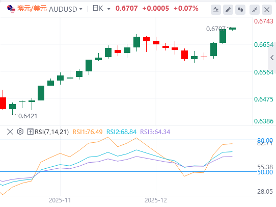 µ±Ç°ÕϰλÓÚ0.6707£¬Îª2024Äê10ÔÂÒÔÀ´×î¸ßµã¡£ÈôµøÆÆ¸Ãˮƽ£¬½«Ö§³Ö°ÄÔª¶ÒÃÀÔª¶Ô̽Ë÷ÉÏÉýͨµÀÉϽç0.6790¸½½üÇøÓò¡£