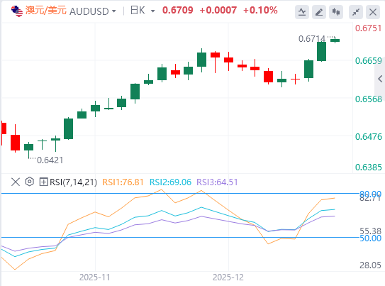 µ±Ç°ÕϰλÓÚ0.6707£¬Îª2024Äê10ÔÂÒÔÀ´×î¸ßµã¡£ÈôµøÆÆ¸Ãˮƽ£¬½«Ö§³Ö°ÄÔª¶ÒÃÀÔª¶Ô̽Ë÷ÉÏÉýͨµÀÉϽç0.6790¸½½üÇøÓò¡£