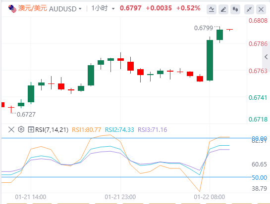 1月22日,澳元/美元走强,此前澳大利亚公布了季节调整后的就业数据,这增强了澳大利亚储备银行(RBA)将采取更紧缩货币政策的预期