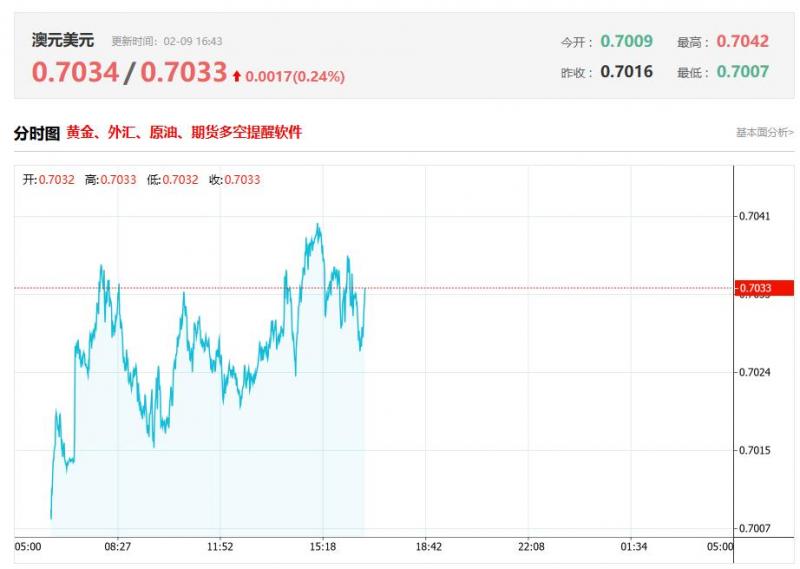 澳元强势态势有所放缓,呈现震荡承压格局。截至2月9日凌晨,澳元兑美元交投于0.6920附近,日内跌幅约0.0578%,开盘后小幅承压走低,盘中最低触及0.6895,整体波动区间集中在0.6895-0.6933,尚未形成明确方向突破。