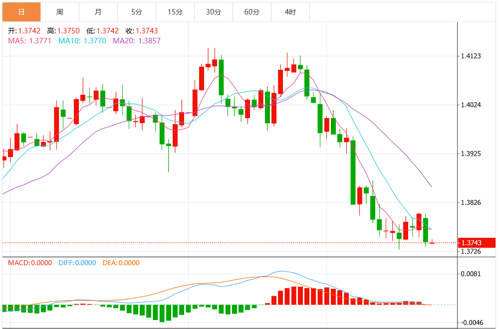 美元/加元汇率走势分析:徘徊于1.3730-1.3725支撑位