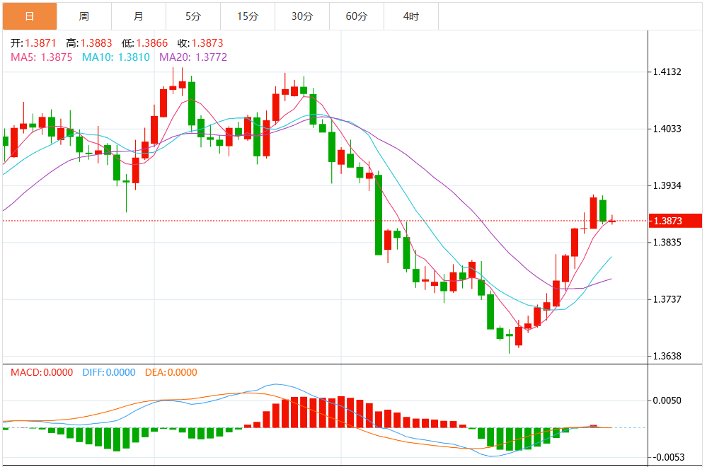从日线结构来看,美元兑加元此前强势上行并一度站上200日均线,目前的回落更偏向技术性修正。1.3920附近构成阶段性阻力,而下方1.3800区域则是短期重要支撑位。