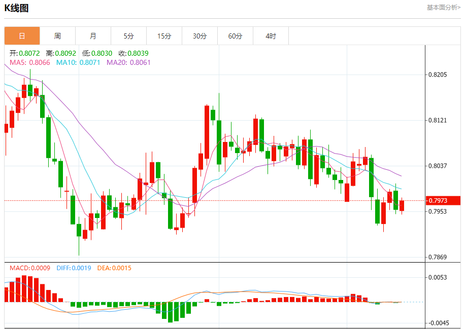 周五纽盘,瑞郎兑美元交投于0.8227,跌幅为0.76%。