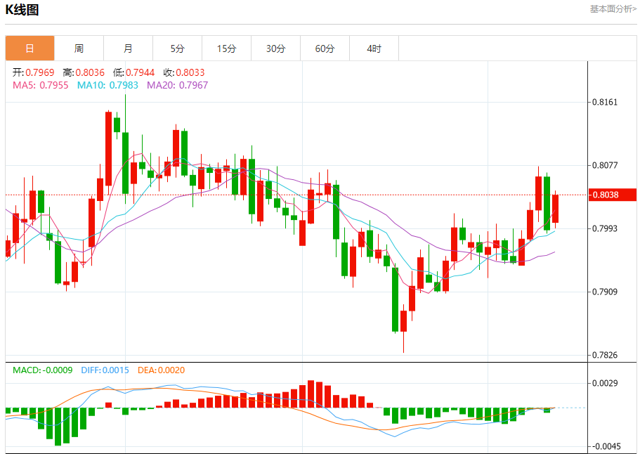 周一纽盘,瑞郎兑美元交投于0.8040,涨幅为0.57%。