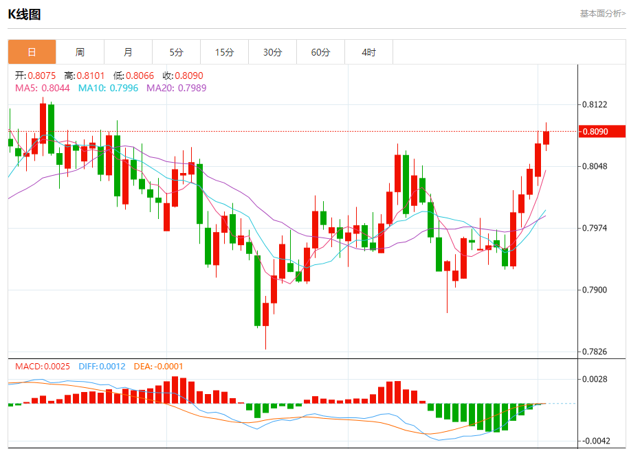周二纽盘,瑞郎兑美元交投于0.8093,涨幅为0.19%。