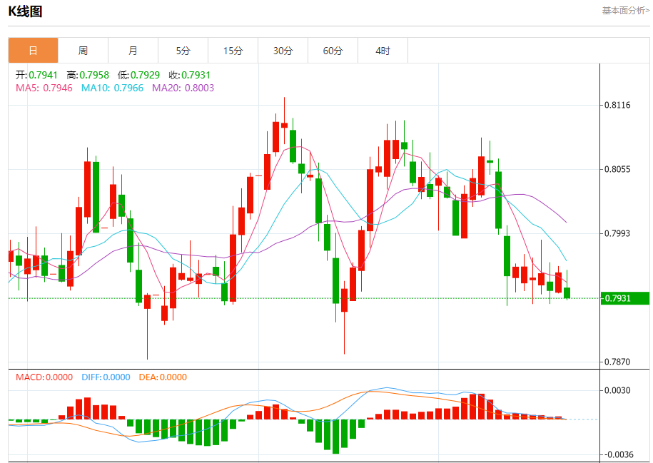 周一纽盘,瑞郎兑美元交投于0.7933,跌幅为0.29%。