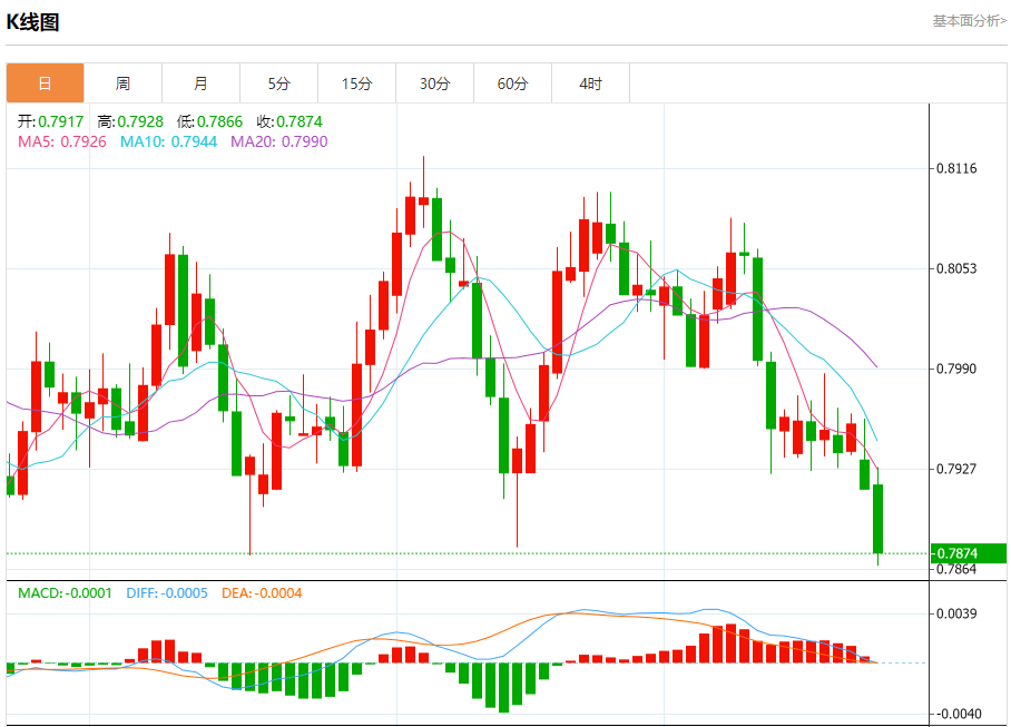 周二纽盘,瑞郎兑美元交投于0.7875,跌幅为0.52%。