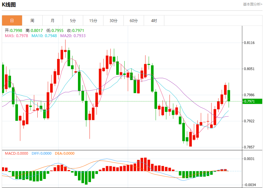 周一纽盘,瑞郎兑美元交投于0.7972,跌幅为0.51%。