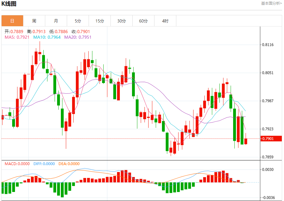 周五纽盘,瑞郎兑美元交投于0.7904,涨幅为0.17%。
