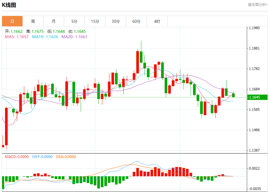 今日周一,截止目前欧元兑美元报1.1649,下跌0.03%。