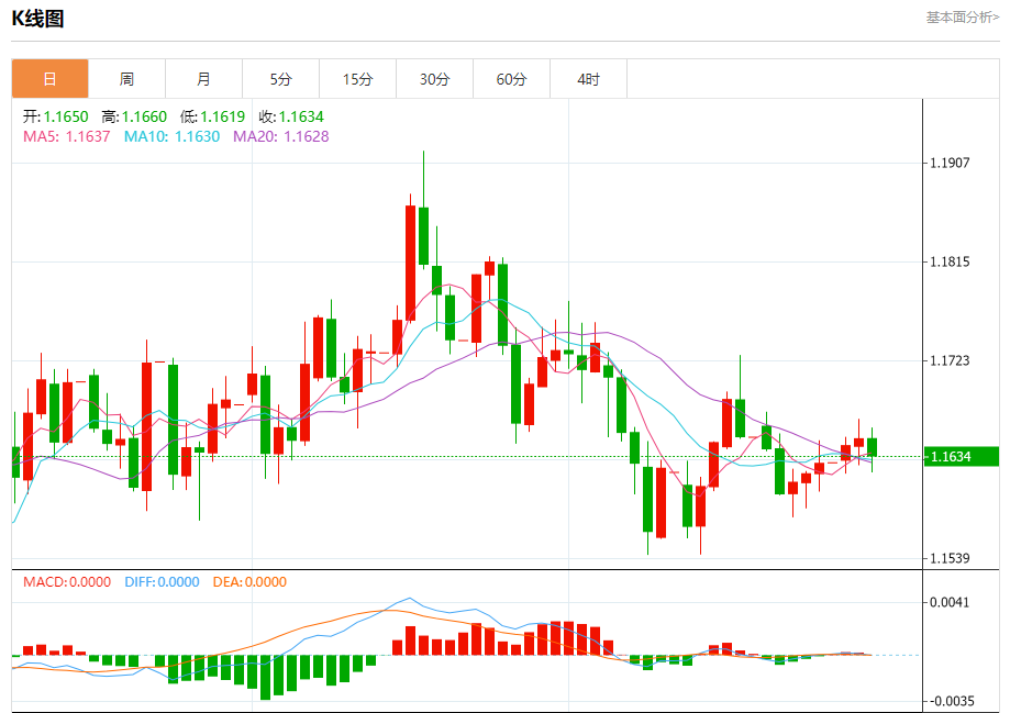 今日周三,截止目前欧元兑美元报1.1639,下跌0.11%。
