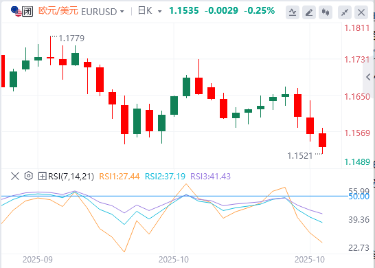 欧洲央行10月31日维持三大关键利率不变:主要再融资利率2.15%、边际贷款利率2.40%、存款利率2.00%。此决定符合市场预期,因欧元区自2024年6月起已启动八次降息,当前利率水平被视为“中性区间”。行长拉加德在发布会重申通胀目标锚定2%的信心,并指出部分增长下行风险已缓解,但通胀前景仍存不确定性。欧元在决议后延续跌势,反映市场对欧美货币政策分化的定价。