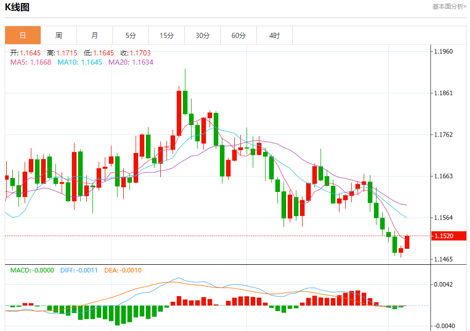 今日周四,截止目前欧元兑美元报1.1520,上涨0.24%。