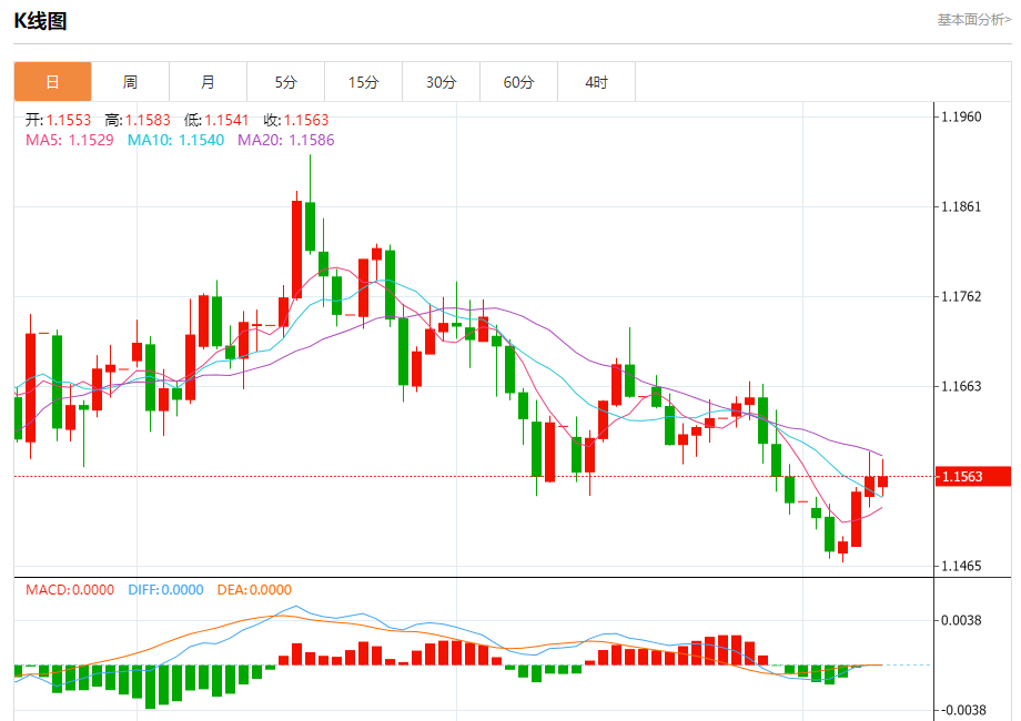 今日周一,截止目前欧元兑美元报1.1564,上涨0.00%。