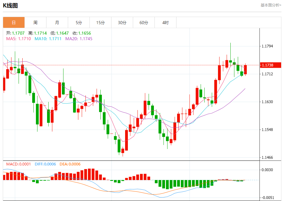 今日周一,截止目前欧元兑美元报1.1740,上涨0.26%。