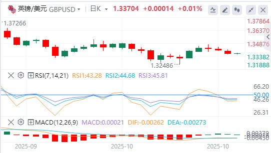 英镑/美元日线图显示,英镑交易在1.3360附近,近期价格走势表明在一系列低高点和高低点之后进入了盘整期。该货币对仍被困在50日指数移动均线(EMA)附近的1.3440和200日EMA附近的1.3290之间,这一范围反映了交易者之间的犹豫。