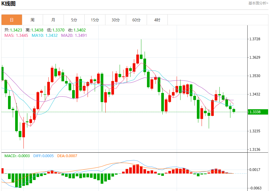 周四欧市盘中,英镑兑美元交投于1.3339,跌幅为0.12%。
