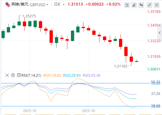 1、英镑/美元货币对的上行空间可能有限,因为美元可能会因美联储进一步降息的可能性下降而获得支撑。美联储主席杰罗姆·鲍威尔指出,由于美国政府持续关门期间数据有限,美联储正在努力平衡其控制通胀和支持就业的双重使命。鲍威尔警告说,在官方数据报告恢复之前,政策制定者可能不得不采取观望态度。他还补充说,12月再次降息还远未确定,强调前景仍不确定。