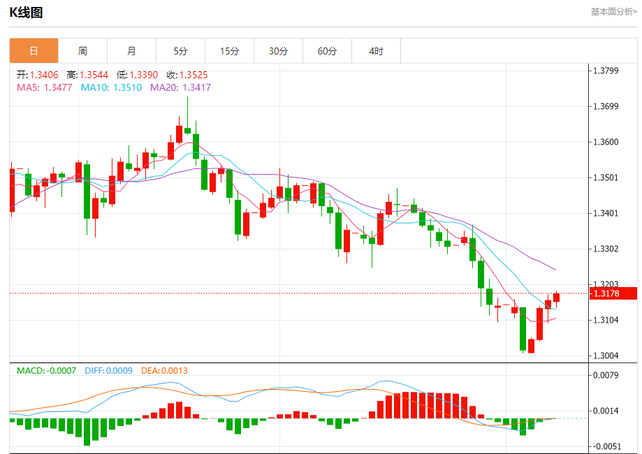 周一欧市盘中,英镑兑美元交投于1.3178,涨幅为0.14%。