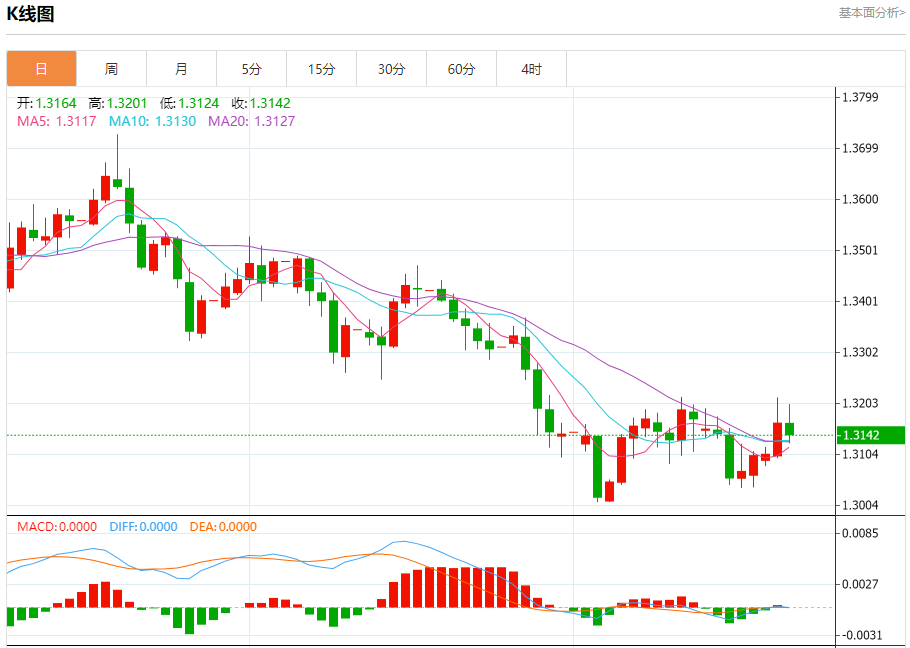 周三欧市盘中,英镑兑美元交投于1.3143,跌幅为0.17%。