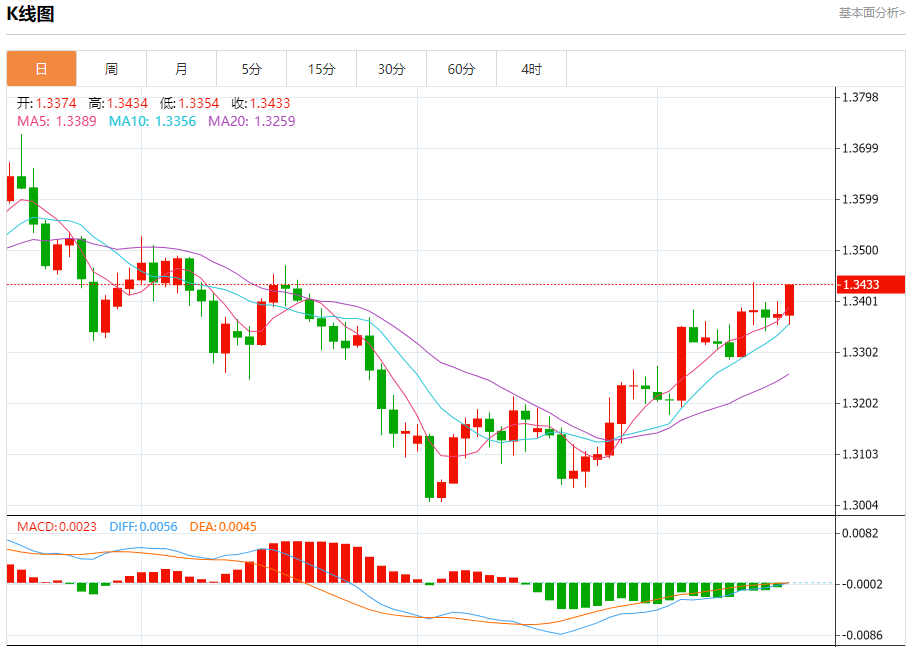 周二欧市盘中,英镑兑美元交投于1.3435,涨幅为0.43%。