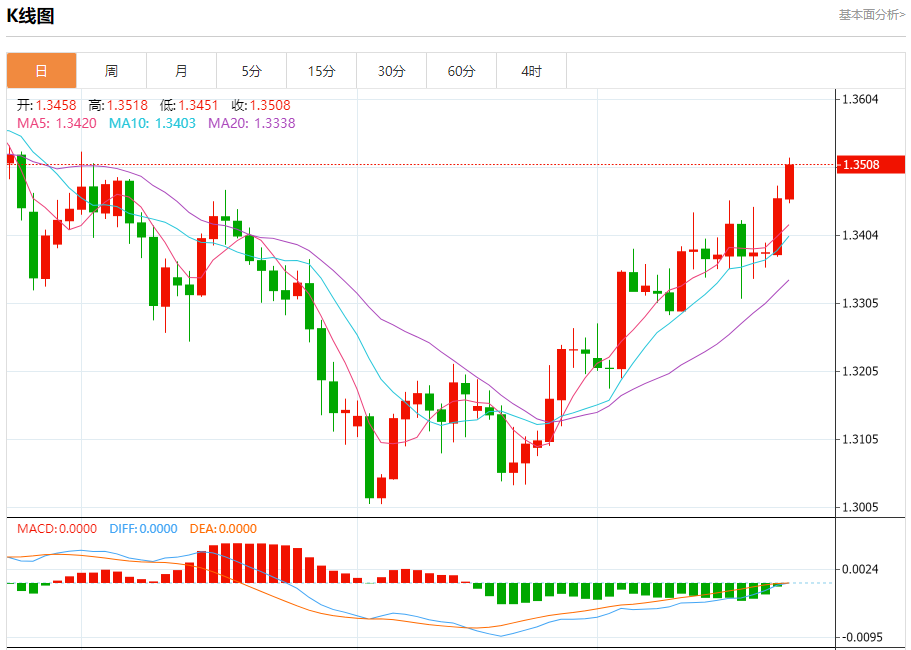 周二欧市盘中,英镑兑美元交投于1.3511,涨幅为0.38%。