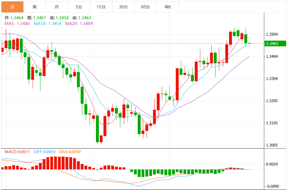 从日线结构来看,英镑兑美元整体维持中期上行趋势中的高位整理格局: 汇价持续运行在上升通道内,回调幅度有限,显示多头结构尚未被破坏。 价格稳固站在20日、50日均线之上,短期均线呈多头排列,对汇价形成支撑。