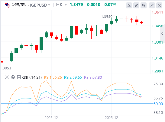 日线图中,英镑/美元交易于1.3454,当日略有下跌。20日均线1.3410走势上涨,价格保持上方,保持短期多头偏向。平均值在近期会期稳步上升,现已提供即时的动态支持。RSI位于60,处于中性正侧,已从近期高点回落,保持动能建设性且未出现过度延伸。