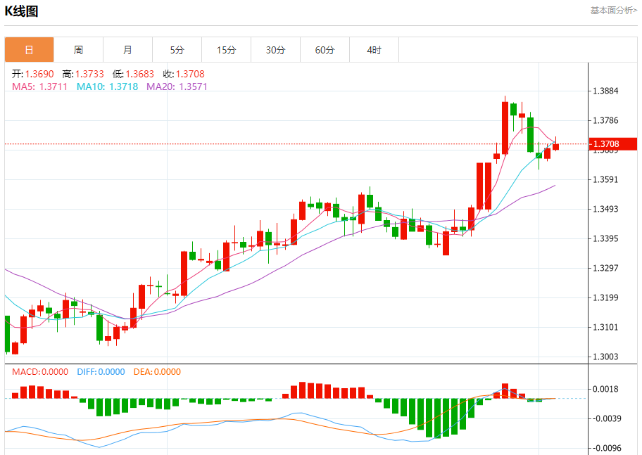 周三欧市盘中,英镑兑美元交投于1.3710,涨幅为0.11%。