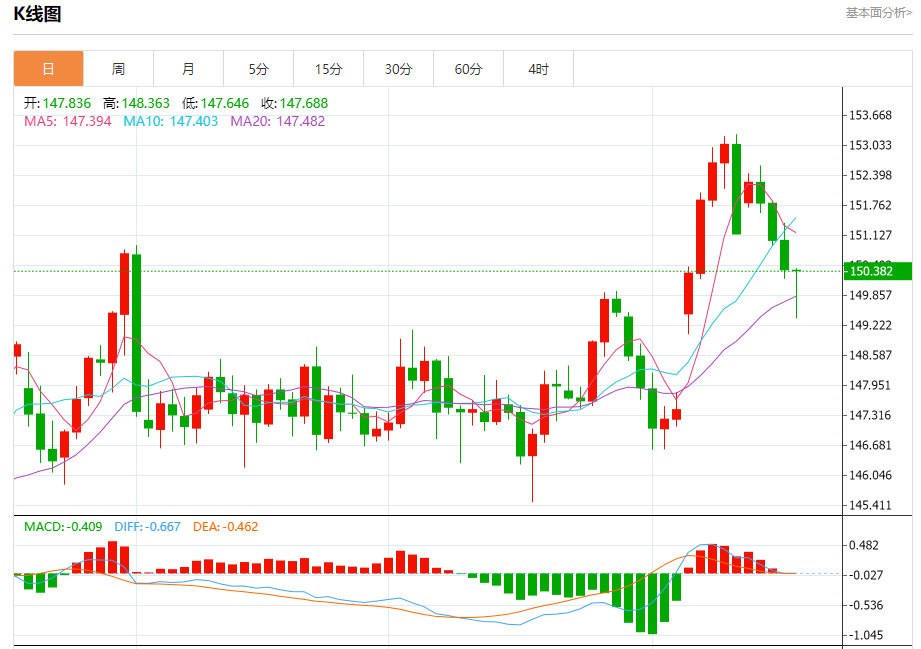 周五纽盘,美元兑日元交投于150.423,跌幅为0.01%。