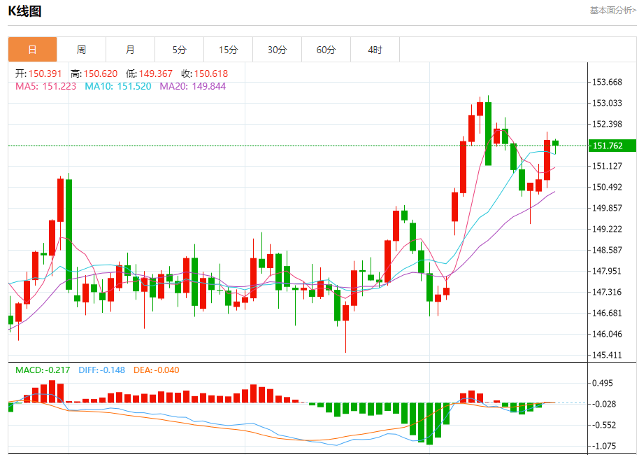 支撑位:151.62 151.67 151.74