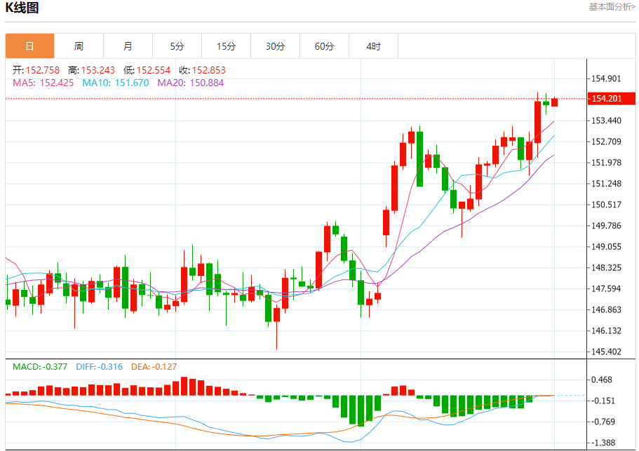 周一纽盘,美元兑日元交投于154.241,涨幅为0.14%。